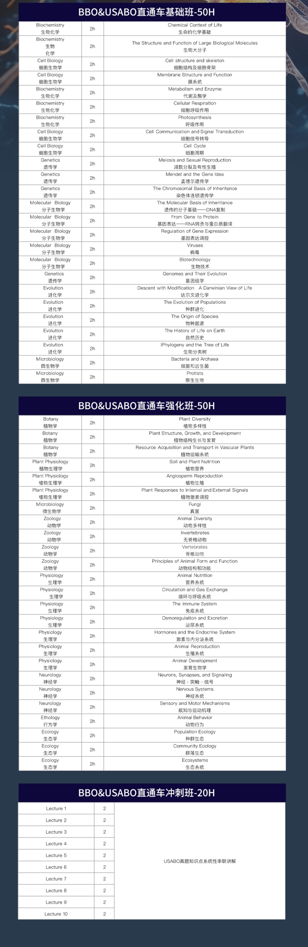 BBO和USABO课程设置