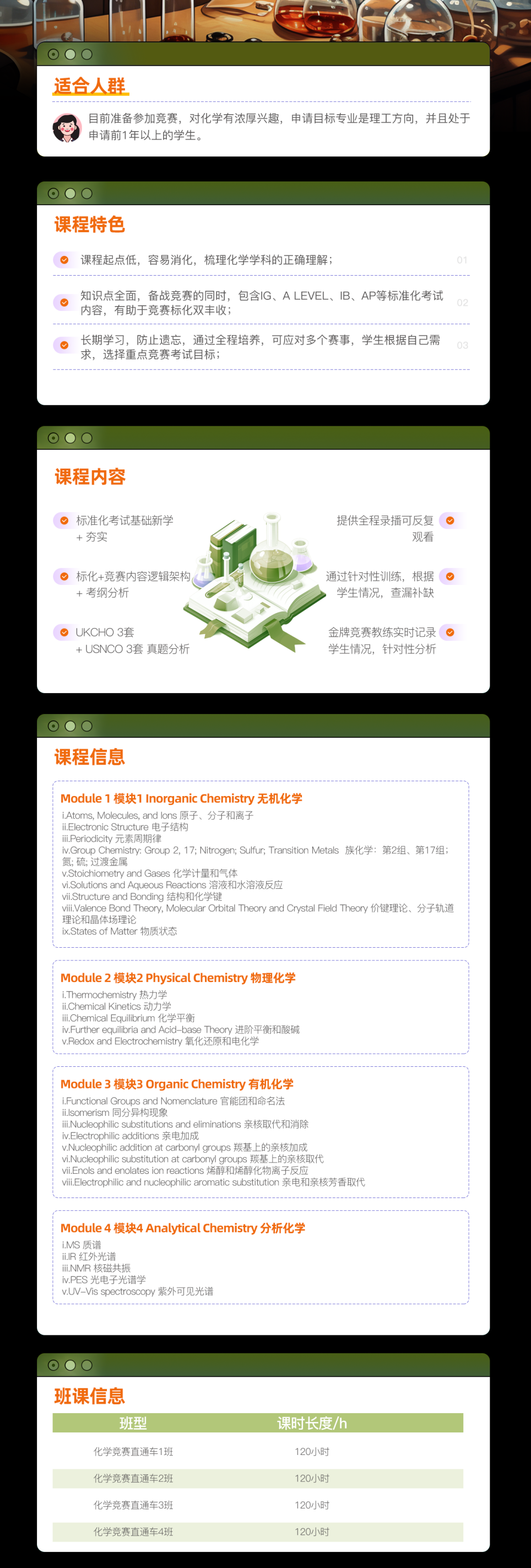 针对2025年1月份的UKChO化学竞赛,我们设置了化学竞赛直通车课程,课程大纲覆盖UKCHO+USNCO考试内容,包含有机化学、无机化学、物理化学、分析化学四大模块,学完可参加CCC、UKCHO和USNCO等化学竞赛。