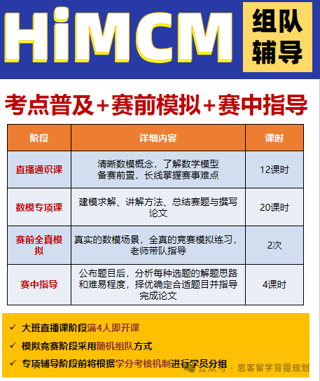 其实在整个HiMCM竞赛的备考中,没有具体的时间确定,但也不建议学生无备考经历,直接参赛。