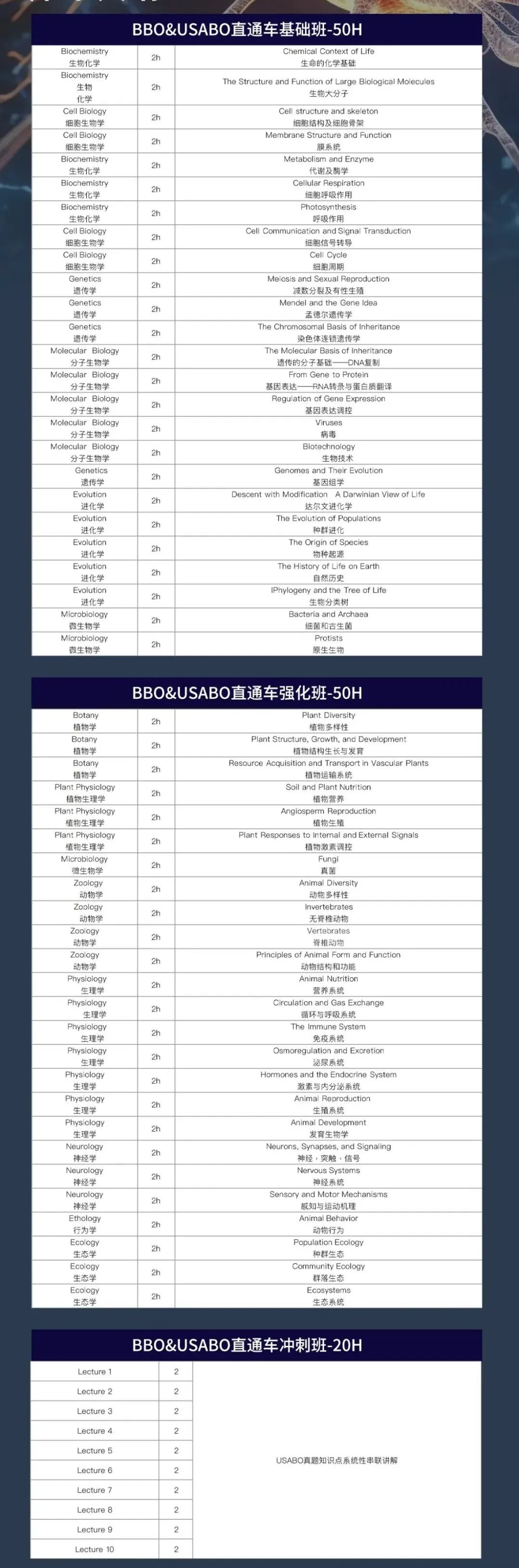 USABO&BBO生物竞赛直通车课程大纲