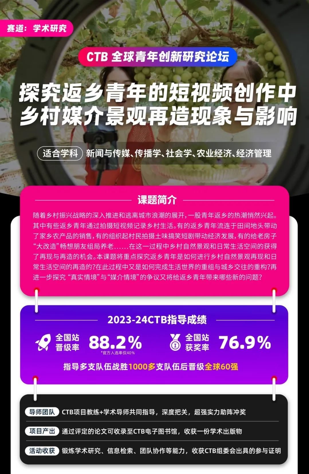 机构CTB辅导团队是由CTB项目教练+学术导师共同指导,学术导师均拥有国内双一流名校博士学历,专业范围涵盖经济学、管理学、社会学、心理学、教育学等领域,导师累计核心期刊发表2.2万+篇,教学经验丰富,紧扣获奖标准,精选课题,助力选手冲刺奖项。