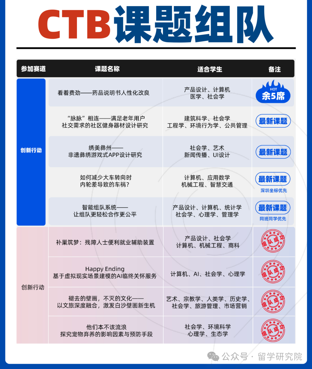 CTB竞赛报名已经开始啦!机构目前已经出了20+的课题,涵盖了各个学科,目前很多课题已经陆陆续续满员发车啦!