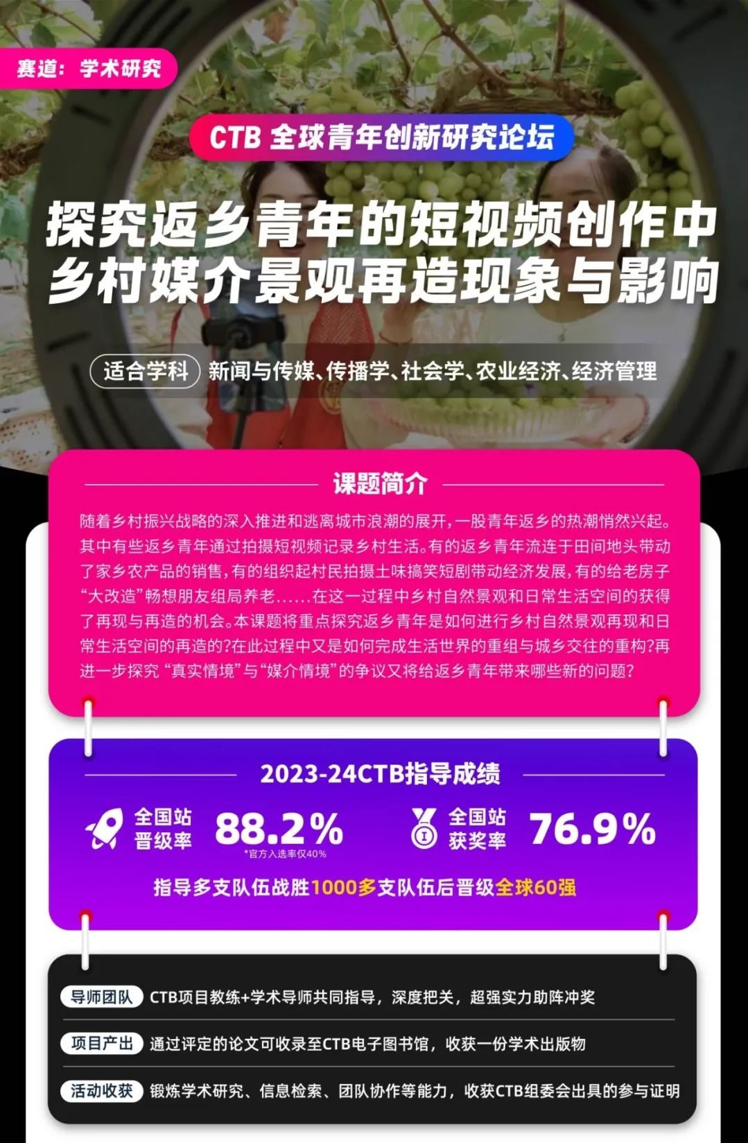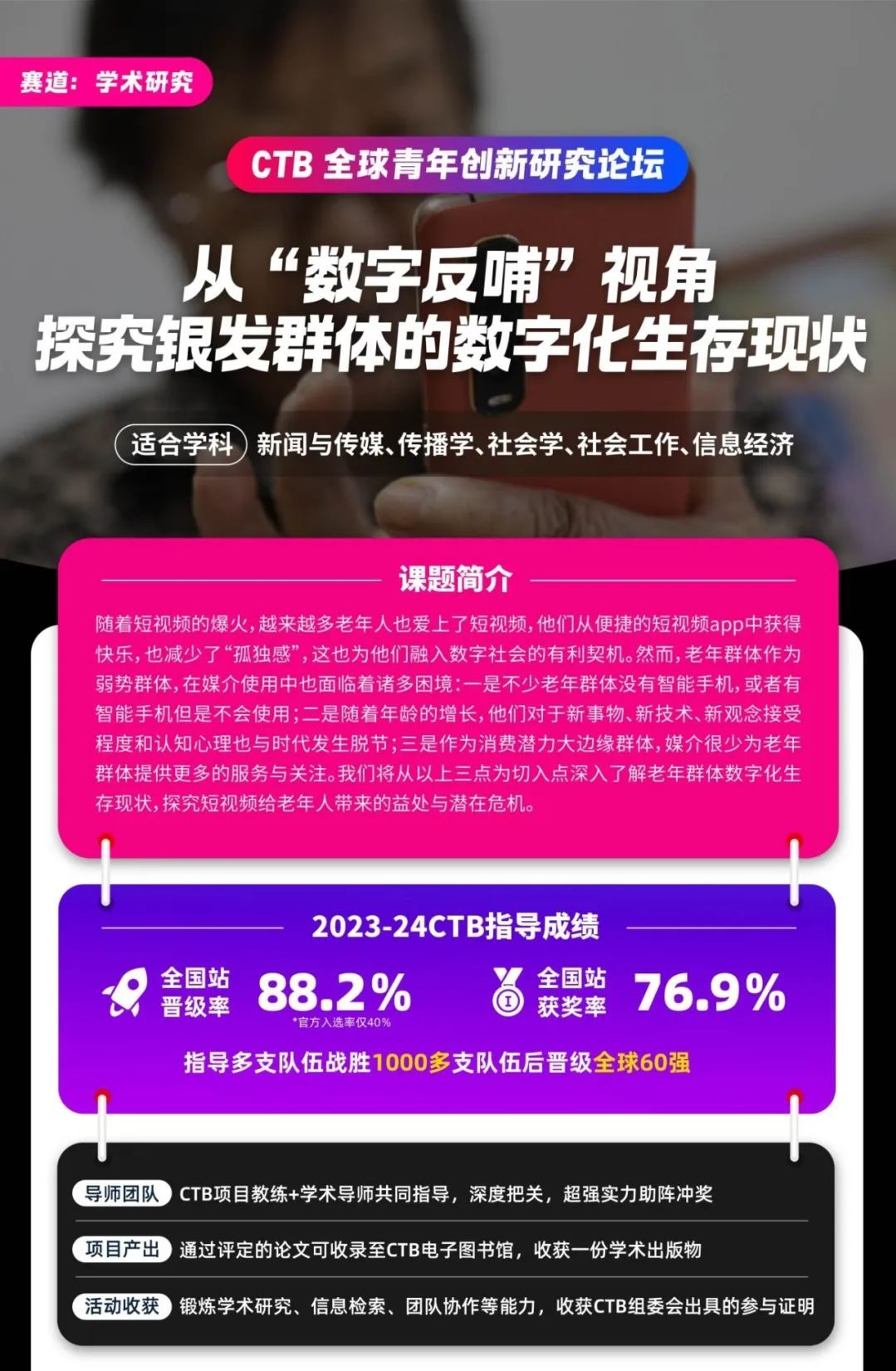 随着比赛的临近,咨询CTB的同学越来越多,机构之前推出的课题很多已经满员,我们又推出6条新增课题帮助大家选择,【CTB今日上架课题】