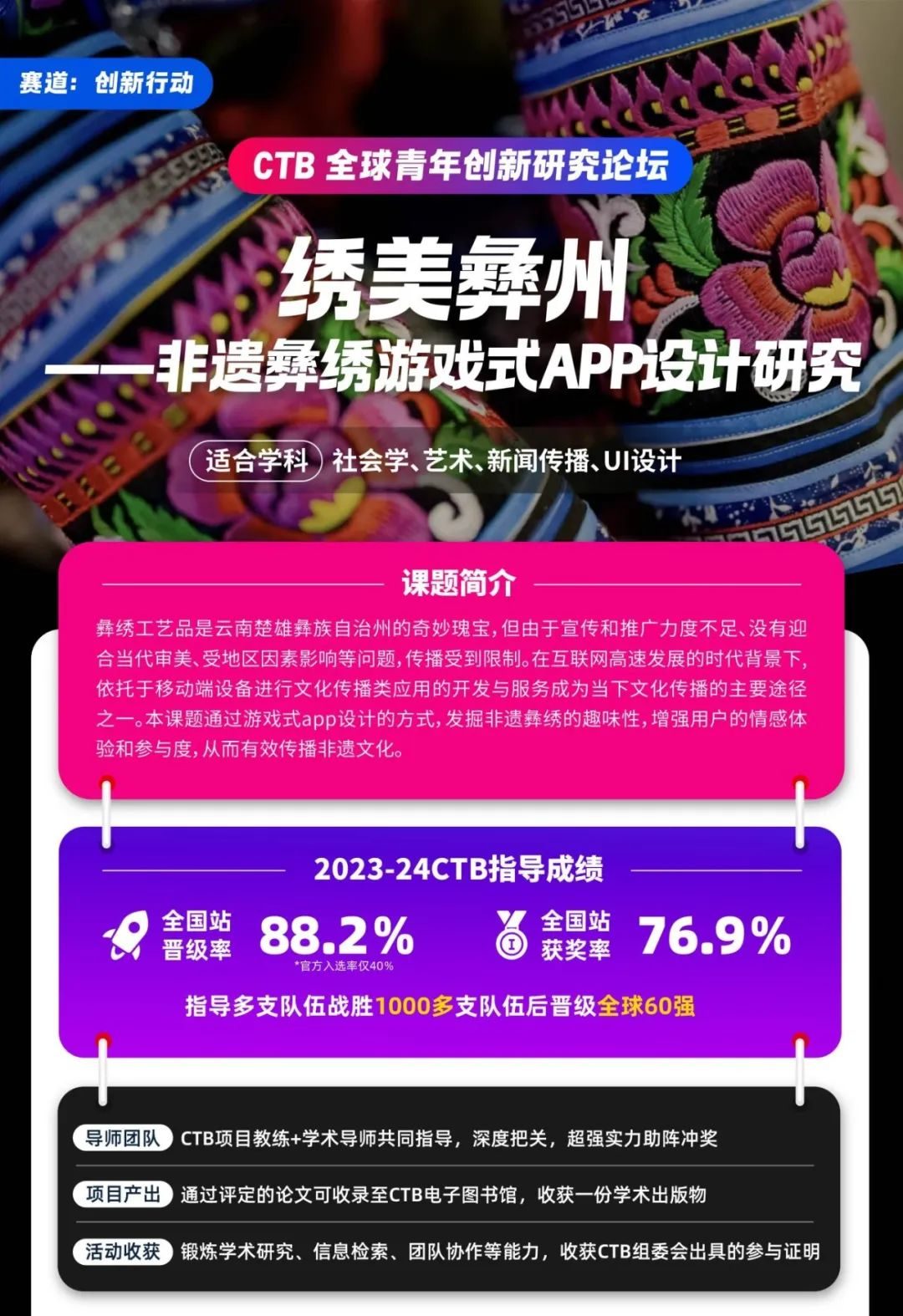 CTB竞赛怎么选课题?哪个适合我?CTB竞赛有培训辅导吗?CTB竞赛机构推荐,CTB竞赛竞赛哪家好?CTB竞赛线上课程哪里有?机构专注于国际竞赛辅导、背景提升,以往CTB辅导战绩全国站晋级率88.2%,获奖率76.9%。全球站晋级率40%,最佳成绩指导学生队伍获得全球银奖1枚,全国二等奖2枚。