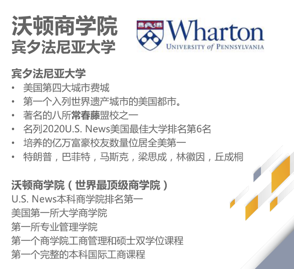 沃顿全球高中生投资比赛, 英文简称“WGHS”,中文简称“沃顿商赛”,是由美国宾夕法尼亚大学沃顿商学院(U.S News本科商学院TOP1)官方举办的沃顿体系商业比赛及商业实践项目 ,在全球拥有多年成功经验和广泛的知名度,是一项面向全球9-12年级高中生的免费线上投资竞赛。