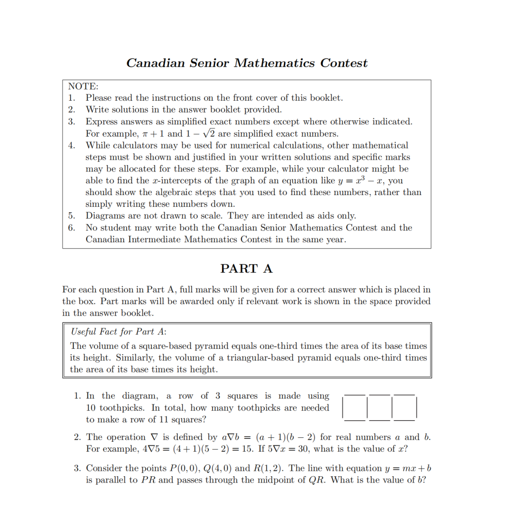 大多数 CIMC 问题是基于直到 10 年级(包括 10 年级)的数学课程。大多数 CSMC 问题包含到中学最后一年的数学课程。