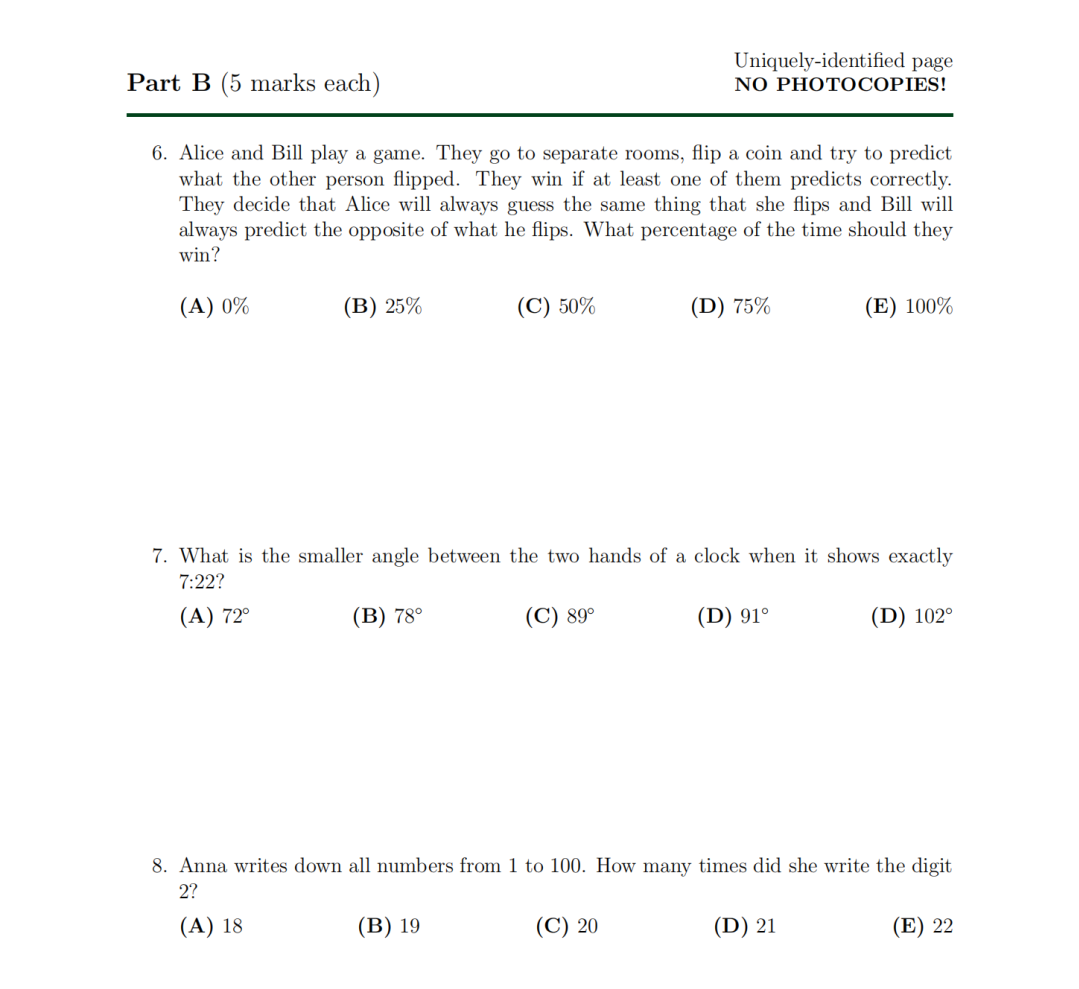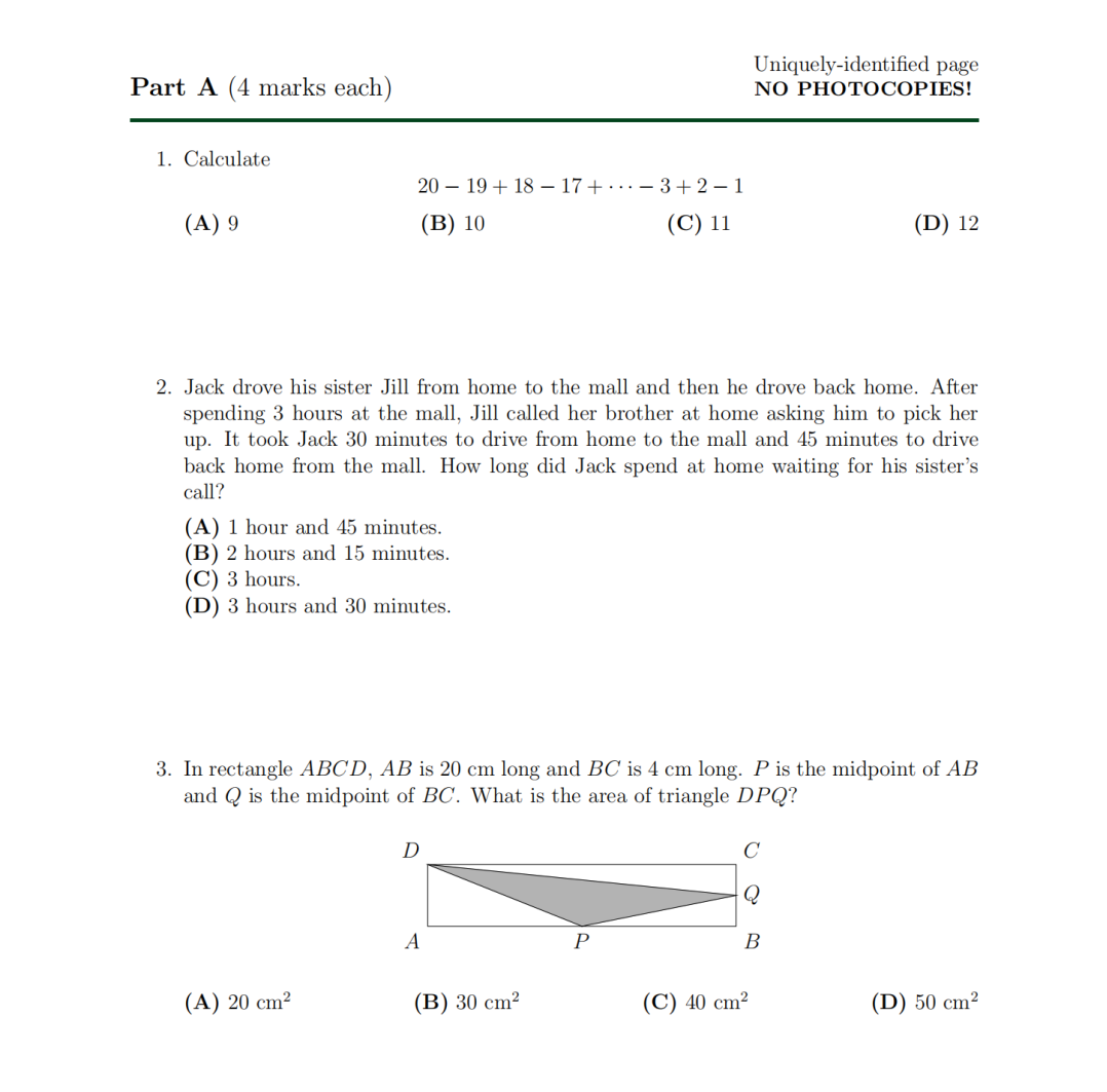 CMGC 将提供一些引人入胜的问题,以便学生在挑战活动后进行探讨,培养学生对数学的兴趣。它是由权威学术机构加拿大数学学会举办,强调趣味性和训练学生数学解题能力。题型按等级分布,由易到难,获奖率超过55%,中英文双语考试。