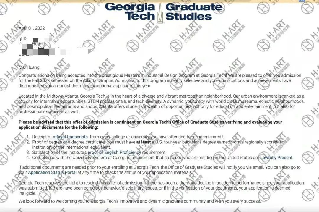 汉艺H同学 获佐治亚理工工业设计MID offer