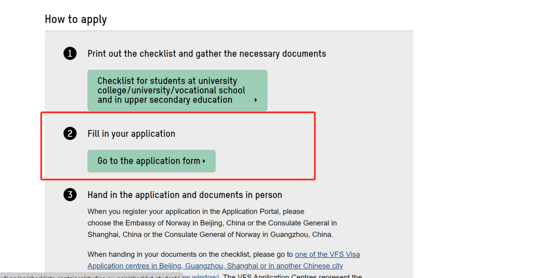 选择申请的城市后就会出现一个checklist ,和之前的材料清单一样。点击go to the application form,就可以开始在线提交申请了。