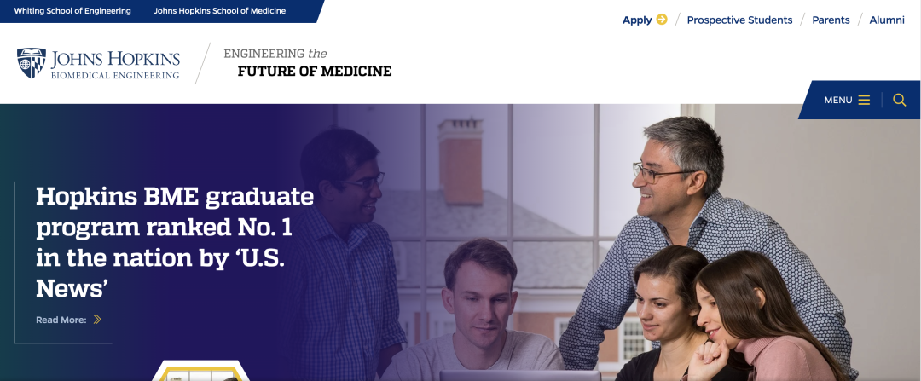 工科门类中,生物医学工程专业最为顶尖,堪称JHU的王牌专业。该校的生物医学工程硕士专业(Departmentof Biomedical Engineering)是为了帮助学生从事研发工作,或进一步迈向博士学位。