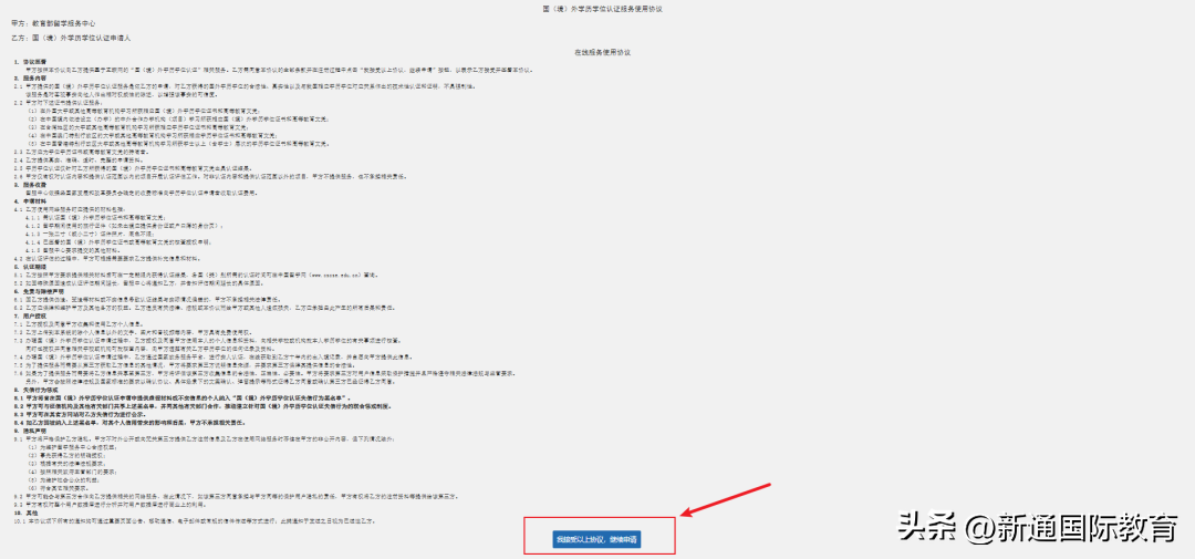 登录后返回服务大厅首页,选择“学历学位认证”、“在线申请”、“增添认证申请办理”,同意申请协议,开始填写认证信息。