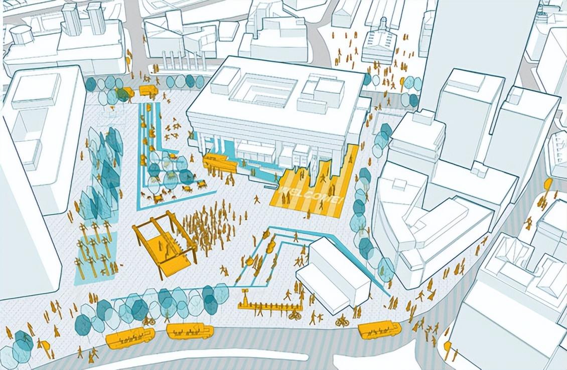利用SU与AI制作的场地分析图©Sasaki场景分析及过程分析图以PS、AI、SU、Rhino、Enscape等软件为主;