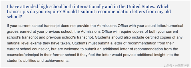 Q:我分别入读过国外和美国的高中,贵校要求哪所学校的成绩单?我是否需要从我原入读学校获取推荐信?