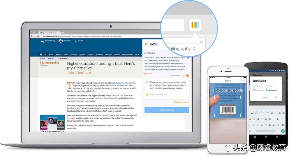 很多同学都有过这种经历,在撰写论文时因为缺少Reference或格式错误而被扣分,严重的还会被教授警告甚至取消论文成绩。RefME这款论文必备工具就是为解决这一痛点而生,同学们可以直接扫描一本书的条形码或输入想要引用网站的网址,即可自动创建一个规范的引用格式。其中包含MLA、Chicago、APA等常用的格式,使用起来非常快捷方便。