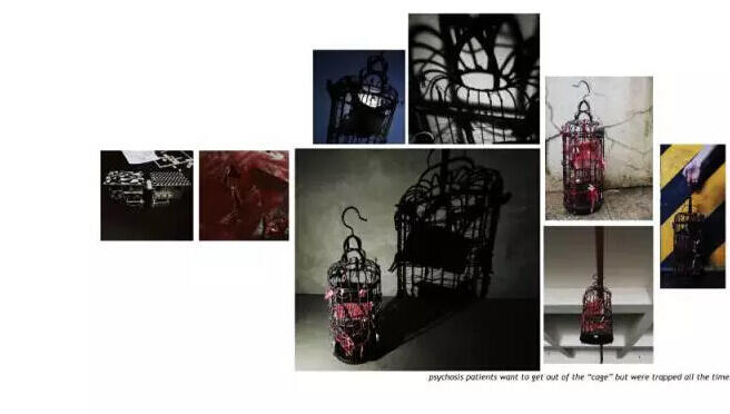 之前在上海看了一个关于这个主题的展览,觉得在大家的概念里,都觉得精神病人是怪物。我想要表现的不仅仅是他们所受到疼痛,我想证明一个观点:他们之所以被称为神经病,可能只是因为他们和我们拥有不同的观点,专注于自己的世界,做自己想做的事情,而我们却困于无聊的日复一日的生活,他们只是跳出了这种乏味的生活,就被我们当作是神经病。其实我们才是真正被困住的那群人。