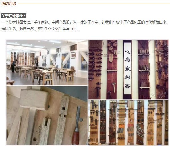 本次活动,我们联合手作工作室——在地手作,提供丰富的木质材料和工具,让你有机会能与木材进行深入的对话,唤醒你的工匠之魂,并且教你制作完成一件烙有自己logo的木作,或留作纪念或送与小伙伴,想想便觉得美美哒!