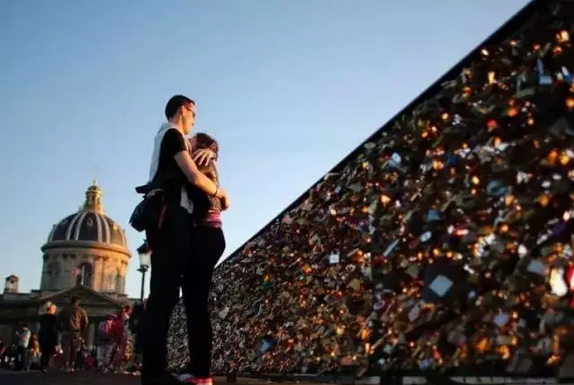 塞纳河上的锁桥不止一座,但最出名的一定是艺术桥,艺术桥连接法兰西学会和卢浮宫中央广场,东面是西岱岛。两侧桥栏上密密麻麻的同心锁见证了无数人的爱情。