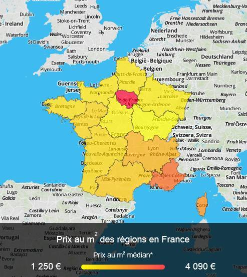 下图为2017年1月至3月的最新数据,根据全国122939单买房价格来看,法国各地二手房价格中间值的区间,大致在1250欧~4090欧之间浮动。