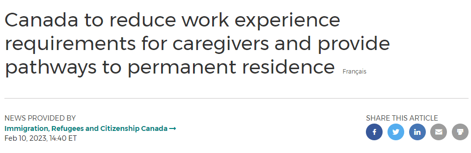 转载说明:文章《加拿大联邦护理项目-移民所需加拿大工作经验从24个月减到12个月》由【留求艺】原创发布(部分转载内容均有注明出处,如有侵权请告知),转载请注明文章来源。